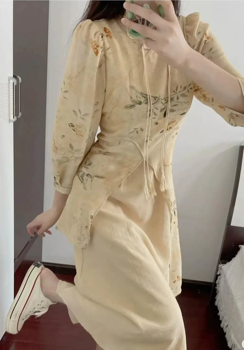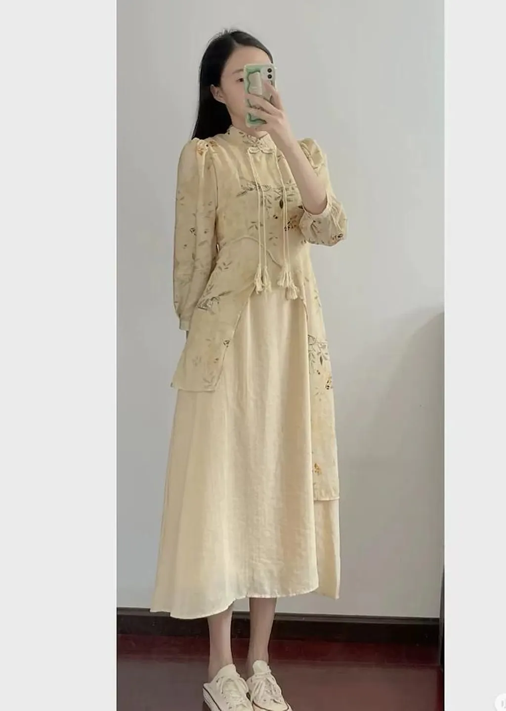米色连衣裙-现代旗袍